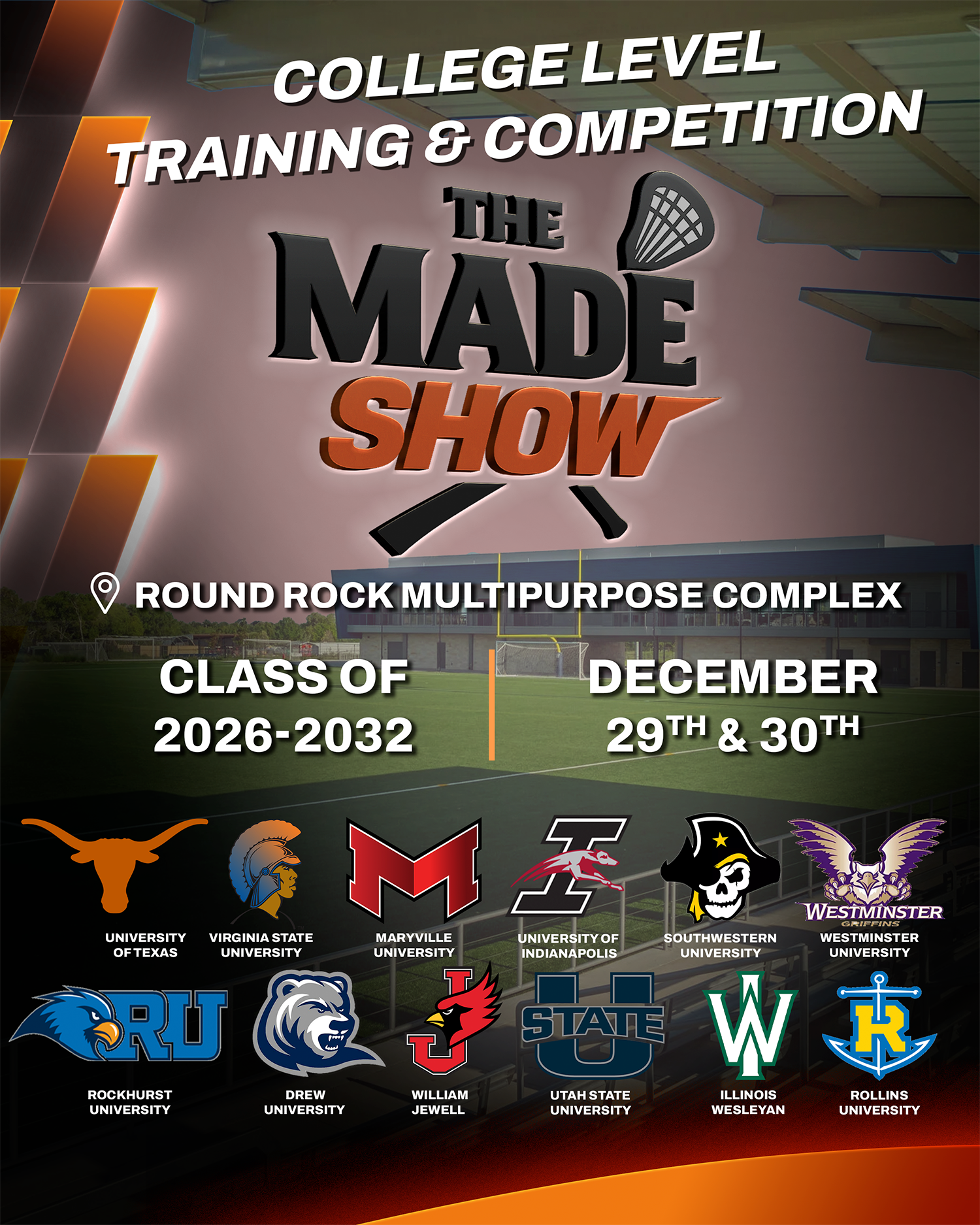 The MADE Show is a college-level lacrosse training and competition event created to give players in the state of Texas the opportunity to train and work directly with college coaches.